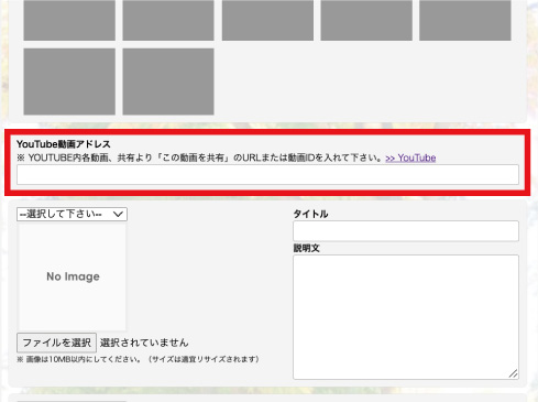③管理画面に戻り、施工事例の「YouTube動画アドレス」の入力欄に、コピーしたURLを入力して登録すると、表画面に動画が表示されるようになります。
