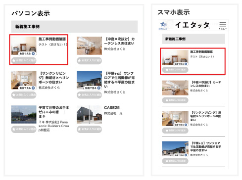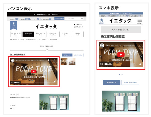 イエタッタの施工事例詳細ページのスライド部分に動画表示ができるようになります。